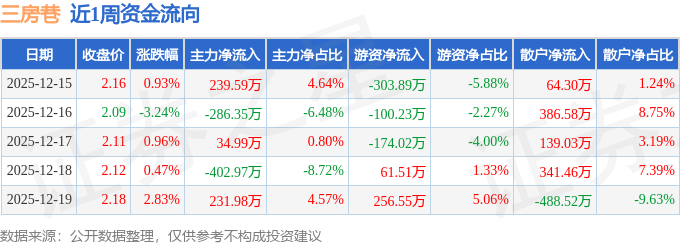 资金流向数据方面,本周三房巷主力资金合计净流出182.77万元,游资资金合计净流出260.07万元,散户资金合计净流入442.84万元。本周资金流向一览见下表: