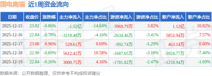资金流向数据方面,本周国电南瑞主力资金合计净流出9282.07万元,游资资金合计净流出3126.88万元,散户资金合计净流入1.24亿元。本周资金流向一览见下表: