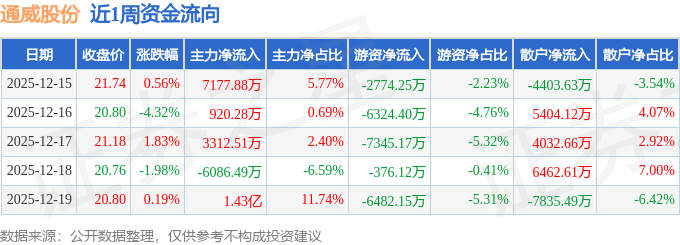 资金流向数据方面,本周通威股份主力资金合计净流入1.96亿元,游资资金合计净流出2.33亿元,散户资金合计净流入3660.27万元。本周资金流向一览见下表: