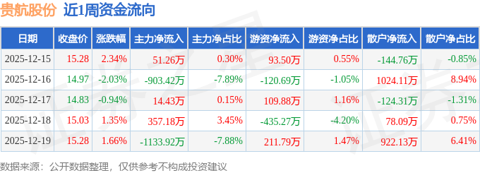 沪深股通持股方面,截止2025年12月19日收盘,贵航股份沪股通持股数为387.5万股,占流通股比为96.0%。