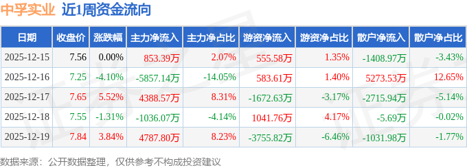 资金流向数据方面,本周中孚实业主力资金合计净流入3136.54万元,游资资金合计净流出3247.49万元,散户资金合计净流入110.95万元。本周资金流向一览见下表: