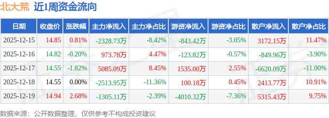 资金流向数据方面,本周北大荒主力资金合计净流出88.92万元,游资资金合计净流出3342.38万元,散户资金合计净流入3431.3万元。本周资金流向一览见下表: