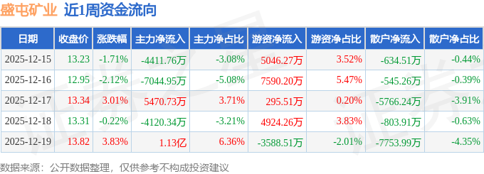 资金流向数据方面,本周盛屯矿业主力资金合计净流入1236.17万元,游资资金合计净流入1.43亿元,散户资金合计净流出1.55亿元。本周资金流向一览见下表: