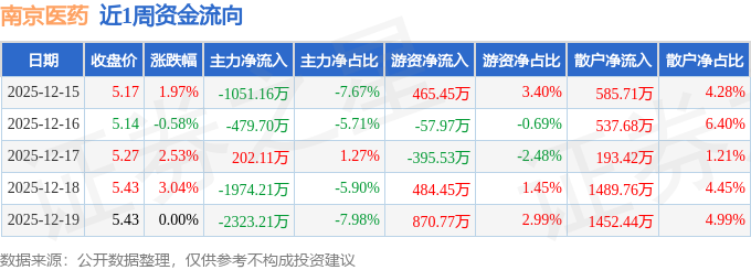 沪深股通持股方面,截止2025年12月19日收盘,南京医药沪股通持股数为1043.86万股,占流通股比为100.0%。