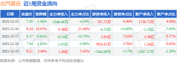 资金流向数据方面,本周北汽蓝谷主力资金合计净流出7673.29万元,游资资金合计净流出1.27亿元,散户资金合计净流入2.03亿元。本周资金流向一览见下表: