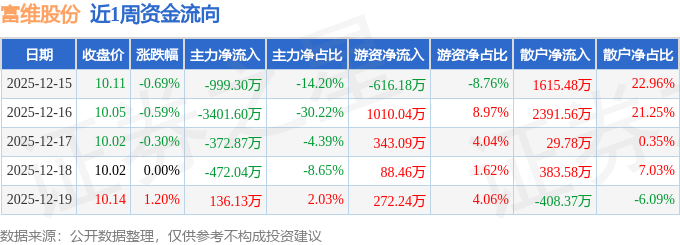 资金流向数据方面,本周富维股份主力资金合计净流出5109.68万元,游资资金合计净流入1097.65万元,散户资金合计净流入4012.03万元。本周资金流向一览见下表:
