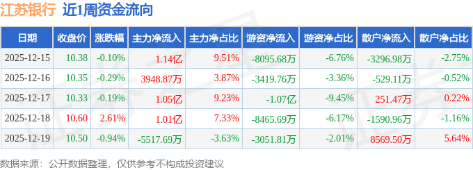 沪深股通持股方面,截止2025年12月19日收盘,江苏银行沪股通持股数为9.06亿股,占流通股比为494.0%。