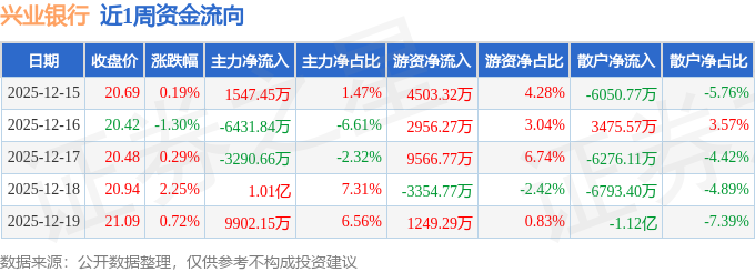沪深股通持股方面,截止2025年12月19日收盘,兴业银行沪股通持股数为8.5亿股,占流通股比为409.0%。