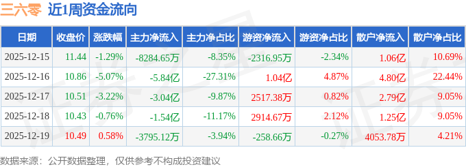 资金流向数据方面,本周三六零主力资金合计净流出11.62亿元,游资资金合计净流入1.33亿元,散户资金合计净流入10.29亿元。本周资金流向一览见下表:
