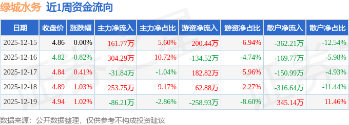 资金流向数据方面,本周绿城水务主力资金合计净流入601.78万元,游资资金合计净流入52.69万元,散户资金合计净流出654.47万元。本周资金流向一览见下表:
