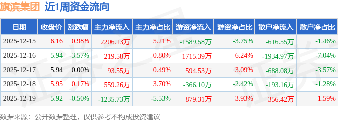 资金流向数据方面,本周旗滨集团主力资金合计净流入1842.79万元,游资资金合计净流入1233.55万元,散户资金合计净流出3076.34万元。本周资金流向一览见下表: