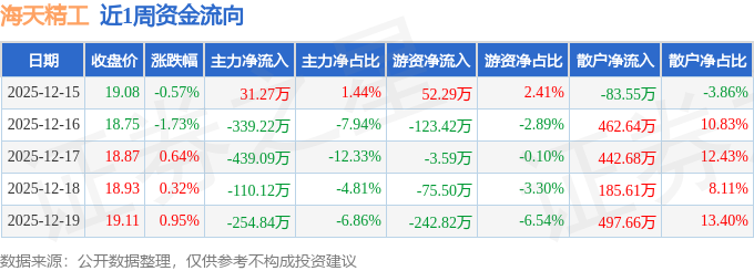 资金流向数据方面,本周海天精工主力资金合计净流出1112.0万元,游资资金合计净流出393.04万元,散户资金合计净流入1505.04万元。本周资金流向一览见下表: