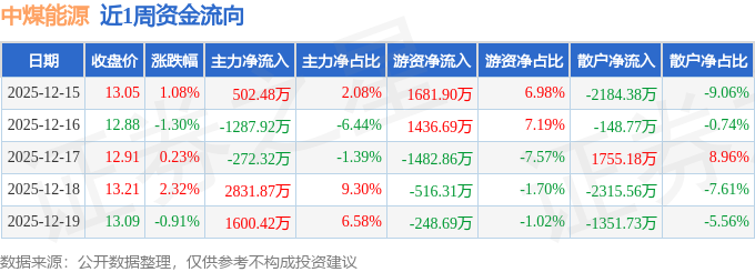 资金流向数据方面,本周中煤能源主力资金合计净流入3374.52万元,游资资金合计净流入870.73万元,散户资金合计净流出4245.25万元。本周资金流向一览见下表: