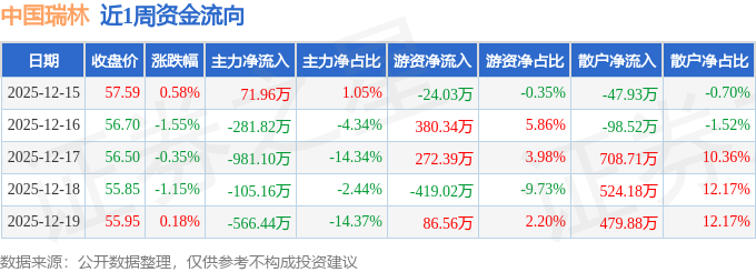 资金流向数据方面,本周中国瑞林主力资金合计净流出1862.56万元,游资资金合计净流入296.24万元,散户资金合计净流入1566.32万元。本周资金流向一览见下表: