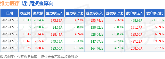 资金流向数据方面,本周维力医疗主力资金合计净流出196.17万元,游资资金合计净流出501.05万元,散户资金合计净流入697.22万元。本周资金流向一览见下表: