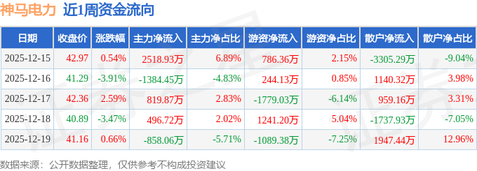 资金流向数据方面,本周神马电力主力资金合计净流入1593.01万元,游资资金合计净流出596.72万元,散户资金合计净流出996.29万元。本周资金流向一览见下表:
