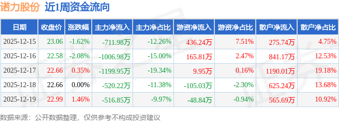 资金流向数据方面,本周诺力股份主力资金合计净流出3955.98万元,游资资金合计净流入458.14万元,散户资金合计净流入3497.85万元。本周资金流向一览见下表: