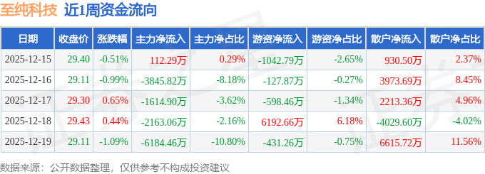 资金流向数据方面,本周至纯科技主力资金合计净流出1.37亿元,游资资金合计净流入3992.28万元,散户资金合计净流入9703.67万元。本周资金流向一览见下表: