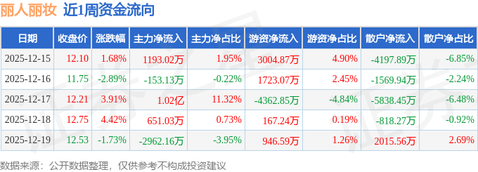 资金流向数据方面,本周丽人丽妆主力资金合计净流入8930.05万元,游资资金合计净流入1478.92万元,散户资金合计净流出1.04亿元。本周资金流向一览见下表: