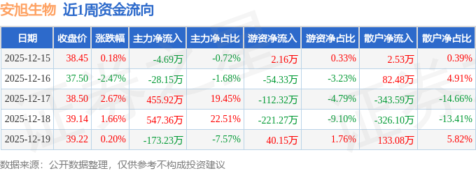 资金流向数据方面,本周安旭生物主力资金合计净流入797.2万元,游资资金合计净流出345.6万元,散户资金合计净流出451.59万元。本周资金流向一览见下表: