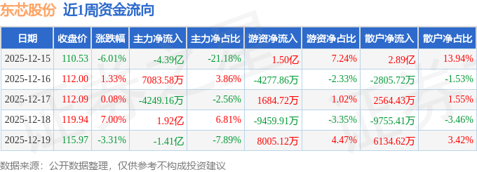资金流向数据方面,本周东芯股份主力资金合计净流出3.6亿元,游资资金合计净流入1.1亿元,散户资金合计净流入2.51亿元。本周资金流向一览见下表:
