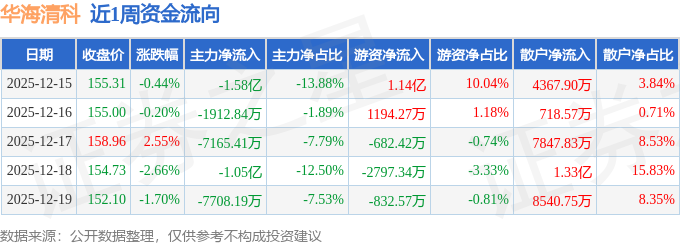 资金流向数据方面,本周华海清科主力资金合计净流出4.31亿元,游资资金合计净流入8288.17万元,散户资金合计净流入3.48亿元。本周资金流向一览见下表: