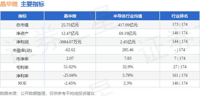 晶华微(688130)主营业务:高性能模拟及数模混合集成电路的研发与销售。 晶华微2025年三季报显示,前三季度公司主营收入1.23亿元,同比上升27.32%;归母净利润-3084.07万元,同比下降330.86%;扣非净利润-4114.77万元,同比下降135.39%;其中2025年第三季度,公司单季度主营收入4454.72万元,同比上升21.8%;单季度归母净利润-787.9万元,同比下降103.14%;单季度扣非净利润-1121.86万元,同比下降39.28%;负债率7.39%,投资收益883.41万元,财务费用-192.53万元,毛利率51.02%。