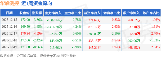 资金流向数据方面,本周华峰测控主力资金合计净流出3779.13万元,游资资金合计净流入1292.33万元,散户资金合计净流入2486.81万元。本周资金流向一览见下表: