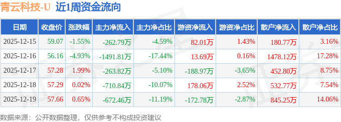 资金流向数据方面,本周青云科技主力资金合计净流出3401.72万元,游资资金合计净流出88.0万元,散户资金合计净流入3489.71万元。本周资金流向一览见下表: