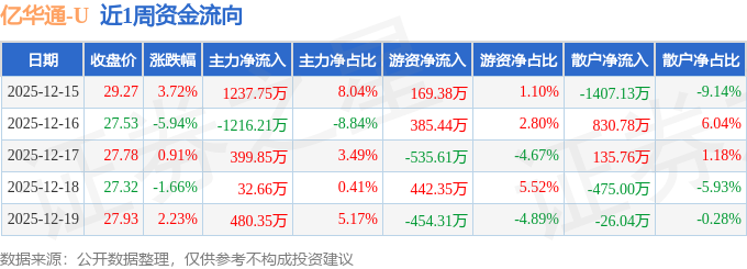 资金流向数据方面,本周亿华通主力资金合计净流入934.39万元,游资资金合计净流入7.25万元,散户资金合计净流出941.64万元。本周资金流向一览见下表: