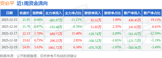资金流向数据方面,本周安必平主力资金合计净流入1366.27万元,游资资金合计净流出676.64万元,散户资金合计净流出689.64万元。本周资金流向一览见下表: