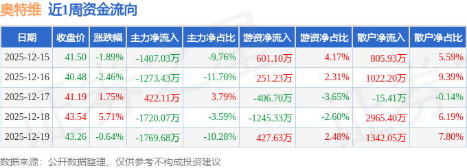 资金流向数据方面,本周奥特维主力资金合计净流出5748.1万元,游资资金合计净流出372.07万元,散户资金合计净流入6120.17万元。本周资金流向一览见下表: