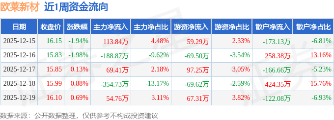 资金流向数据方面,本周欧莱新材主力资金合计净流出305.59万元,游资资金合计净流入84.74万元,散户资金合计净流入220.86万元。本周资金流向一览见下表: