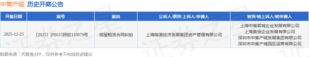 证券之星消息,根据天眼查APP显示,近日公布了一则深圳市中集产城发展集团有限公司作为被告/被上诉人的开庭公告,详细内容如下: