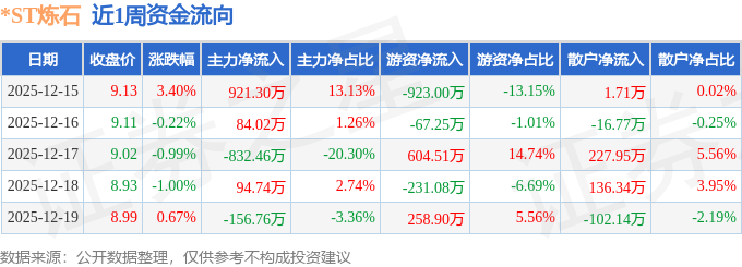 沪深股通持股方面,截止2025年12月19日收盘,*ST炼石深股通持股数为291.03万股,占流通股比为52.0%。