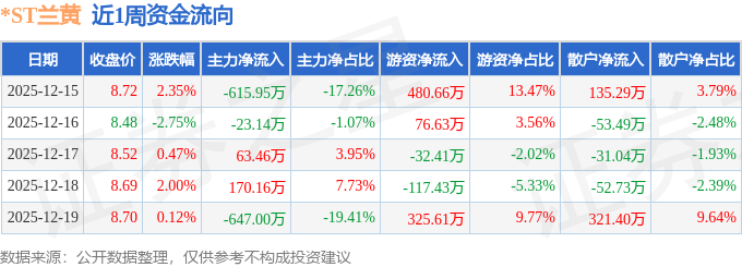 资金流向数据方面,本周*ST兰黄主力资金合计净流出1052.47万元,游资资金合计净流入733.05万元,散户资金合计净流入319.42万元。本周资金流向一览见下表: