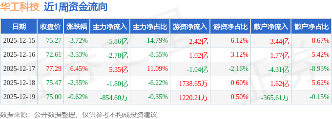 资金流向数据方面,本周华工科技主力资金合计净流出5.18亿元,游资资金合计净流入2.69亿元,散户资金合计净流入2.48亿元。本周资金流向一览见下表: