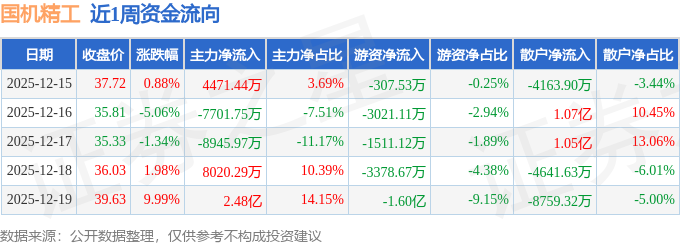 资金流向数据方面,本周国机精工主力资金合计净流入2.06亿元,游资资金合计净流出2.42亿元,散户资金合计净流入3615.09万元。本周资金流向一览见下表: