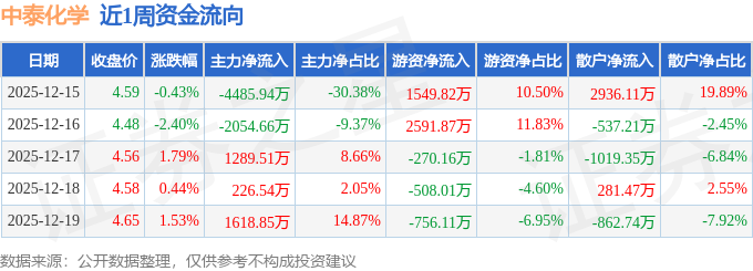资金流向数据方面,本周中泰化学主力资金合计净流出3405.7万元,游资资金合计净流入2607.41万元,散户资金合计净流入798.29万元。本周资金流向一览见下表: