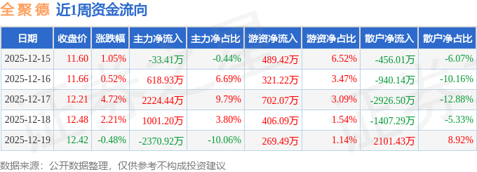 资金流向数据方面,本周全 聚 德主力资金合计净流入1440.23万元,游资资金合计净流入2188.29万元,散户资金合计净流出3628.52万元。本周资金流向一览见下表:
