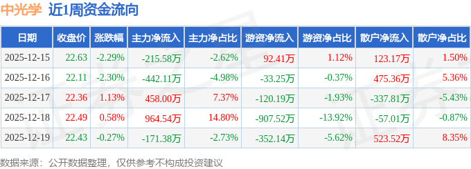 资金流向数据方面,本周中光学主力资金合计净流入593.47万元,游资资金合计净流出1320.69万元,散户资金合计净流入727.22万元。本周资金流向一览见下表:
