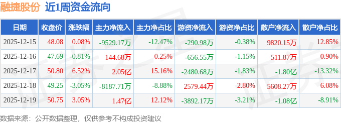 沪深股通持股方面,截止2025年12月19日收盘,融捷股份深股通持股数为182.03万股,占流通股比为70.0%。