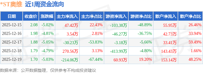 资金流向数据方面,本周*ST奥维主力资金合计净流入77.23万元,游资资金合计净流出505.89万元,散户资金合计净流入428.66万元。本周资金流向一览见下表:
