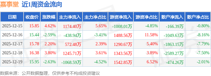 资金流向数据方面,本周嘉事堂主力资金合计净流入1485.06万元,游资资金合计净流入4657.63万元,散户资金合计净流出6142.69万元。本周资金流向一览见下表: