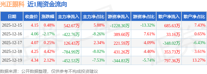 资金流向数据方面,本周光正眼科主力资金合计净流出991.18万元,游资资金合计净流出530.69万元,散户资金合计净流入1521.87万元。本周资金流向一览见下表: