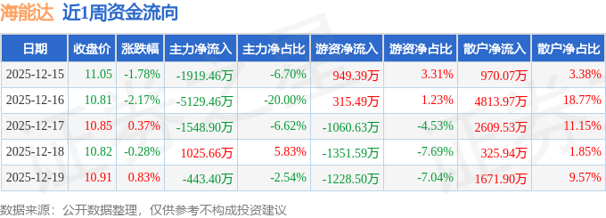 资金流向数据方面,本周海能达主力资金合计净流出8015.56万元,游资资金合计净流出2375.84万元,散户资金合计净流入1.04亿元。本周资金流向一览见下表: