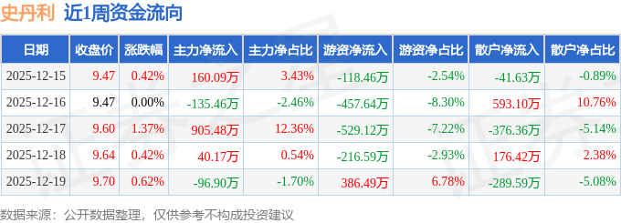 资金流向数据方面,本周史丹利主力资金合计净流入873.37万元,游资资金合计净流出935.31万元,散户资金合计净流入61.93万元。本周资金流向一览见下表: