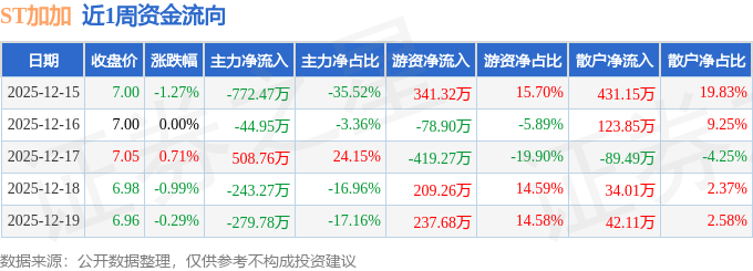 资金流向数据方面,本周ST加加主力资金合计净流出831.72万元,游资资金合计净流入290.09万元,散户资金合计净流入541.63万元。本周资金流向一览见下表: