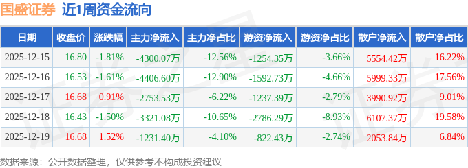 沪深股通持股方面,截止2025年12月19日收盘,国盛证券深股通持股数为1527.31万股,占流通股比为94.0%。