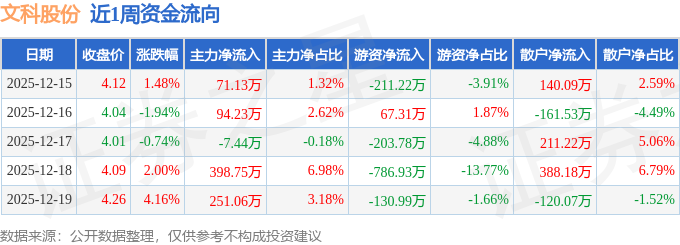 资金流向数据方面,本周文科股份主力资金合计净流入807.73万元,游资资金合计净流出1265.61万元,散户资金合计净流入457.88万元。本周资金流向一览见下表: